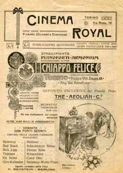 Il cinema Royal è sito nel punto più centrale della Città, via Roma 18, dove facilmente il passante lo distingue allo scintillio delle potenti lampade Brunt azionate dal macchinario elettrico impiantato dalla ditta Chiadò-Viret.