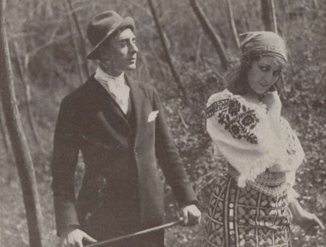 L’odissea di Azara, la misteriosa fanciulla vissuta tra le asperità della vita nomade, insidiata dal selvaggio desiderio di Aleko che vuol contenderla alla muta adorazione di Zaro, vinta finalmente dalla pura ed infelice passione per il barone Freiman, è svolta su uno sfondo suggestivamente pittoresco. Mai forse come in questa film l’ambiente è stato ritratto con tanta cura e dovizia di particolari. Pianure sterminate, immense foreste illuminate dai tramonti di fuoco. Caverne che servono alle punizioni e alle vendette, giardini dai quali salgono profumi di magiche seduzioni… ecco lo scenario fastoso e fantastico.