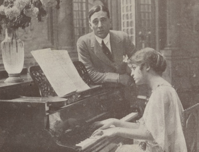 La danzatrice ritira prontamente la mano che egli vorrebbe prendere e baciare… Ma, quando rimane sola, si china a raccogliere la gardenia che è caduta da un occhiello di lui… e la porta alle labbra appassionatamente.