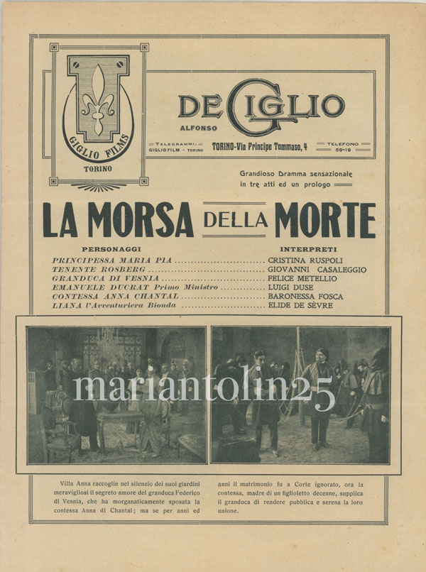 (dal volantino del Teatro Cines, già Apollo, Venerdì 27 marzo 1914)